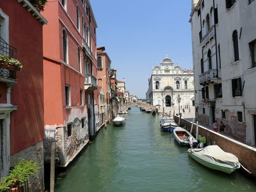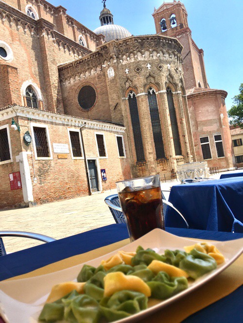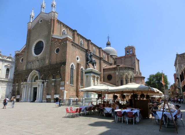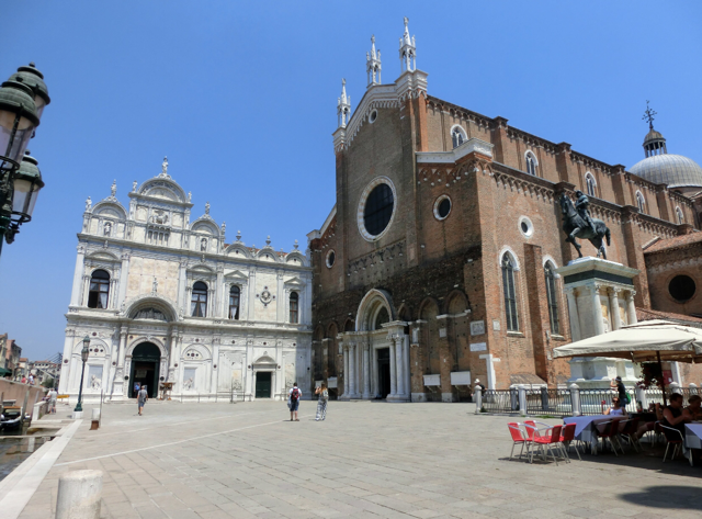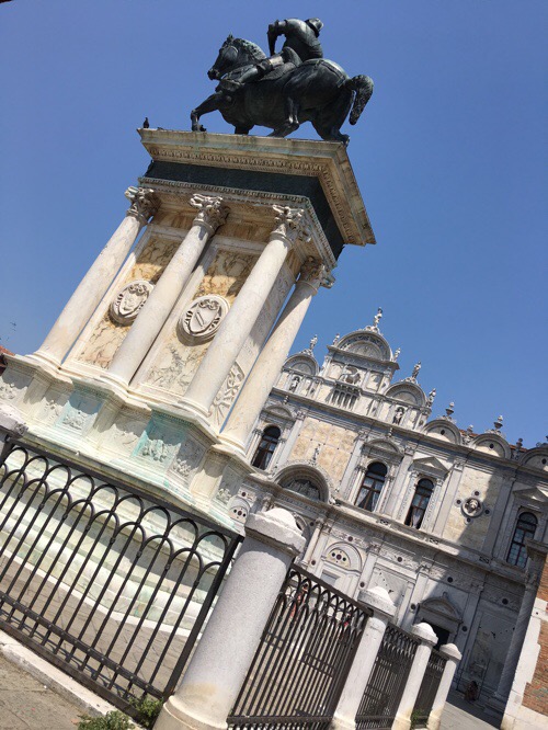 08 (日)20:25July 6/30 ベネチア ♡パオロ教会 「サンティッシマ・ジョヴァンニ・エ・パオロ教会」1430年完成ヴェネツィア共和国歴代元首のお葬式などが執り行なわれたカトリック教会です。25人の元首がこの聖堂内に埋葬されています。ゴシック建築を元にした煉瓦造りで、ヴェネツィア内でも大きな聖堂の1つです。眺めながらお昼ごはん♡教会前の広場に建つのは「コッレオーニ騎馬像」 コッレオーニ? 誰?「バルトロメーオ・コッレオーニ」は、ヴェネツィア共和国の傭兵隊長であり、ベルガモの領主でもあった人。遺書によって、対トルコ戦の費用として10万ドゥカーティを寄贈する代わりに、自身の像をサン・マルコ広場に建てるよう政府に要求しましたが、共和国制度を採用するヴェネツィアにとって個人の記念像を都市の中心広場に置くことはとても許容できなかったため、サン・ジョヴァンニ・エ・パオロ教会前の広場に建てられることとなったそうです。パオロ教会の隣にも教会がある。と思ったけどこちらは教会ではなく、「スクオーラ・グランデ・ディ・サン・マルコ」(Scuola Grande di San Marco)と呼ばれる、かつてのコミュニティセンターの様な機能を持った建物であり、現在は市民病院として利用されている建物でした。教会横はすぐに水路。左に曲がって振り返った写真。大きなカモメが船にとまっている様が優雅。ベネチアでは、大きなカモメをあちこちで見かけました。 ベネチアはほんとに水路だらけで。。 どこも同じような道で。。地図とスマホがなければ、私は永遠に彷徨うと思います。サン・マルコ人場からパオロ教会に行くまでに6個の水路を通りました。ってことは6個の橋を渡ったということで、身軽でないとベネチアは歩けないということです。 2018-07-08 (日) | イタリア ベネチア コメント(0)