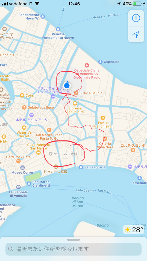 01 (日)06:48July ヴァポレットのチケットについて語る もし運悪く検察が来たら怖いし、ヴァポレットに乗れなくて列車に間に合わなくなったら怖いしなー。チケットなしで一か八か乗ってみるか…と、思いつつもそんな不安なことできんや…と思いながらの自撮り棒でした。ありえないんだよねー。船着場のチケット売り場は、ワンウェイチケットは当日分しか買えないとか。明日の朝、ヴァポレットでローマ広場まで移動するのにチケットが買えなくてどうしよーって感じ。ローマ広場まで買いに行くのって、ハンパないんよ。直線距離なら遠くないけど、水路の階段に曲がりくねった道、マップ見ながら歩いても道がなかったり行き止まりになったり、スマホでも位置情報が揺れるから安心できない。そんなキツイ思いしてローマ広場まで行くか?行かないよ。笑明日のチケットを買うためにヴァポレットに乗るか?往復€15だよ。行かないよ。笑明日の船着場まで道の予習をしたり、隣の船着場までチケット売ってないか行ったりして、結局、チケット買えないまま、休憩となる。疲れた。無銭乗船しようかな…と、またも思う。 日頃の筋トレの成果で腕が太い♡ナイス筋トレ!ピザ食べながら、気を取り直してマップを見たら、サン・マルコ広場にタバツキがある。そうね、またサン・マルコ広場まで行けばいいのよね。ローマ広場は遠いけど、サン・マルコ広場なら行けるや。あった! サン・マルコ広場の船着場は大きいから明日のワンウェイチケット買えた(๑>◡<๑) やっと手に入った。 スッキリしたーーー♡満面の笑顔だよ。すごく嬉しかった。やっとゲット。 景色、きれいーーー♡イタリアって、街ごとに全てが違う。さて、船着場ですが、この先に船着場があるの??この先にあると思えない。思えんでしょ(⁎⁍̴̆Ɛ⁍̴̆⁎) こんな道ばっか。ベネチア、一度は行ってみてください。車が走らない街。水路だらけの街。迷路のように張り巡らされた水路と道路。スマホ見ながら歩いてる人、立ち止まって途方に暮れてる人がたくさん。私は迷路のアトラクションに入り込んでる錯覚を起こしそうでした… 2018-07-01 (日) | イタリア ベネチア コメント(0)