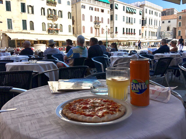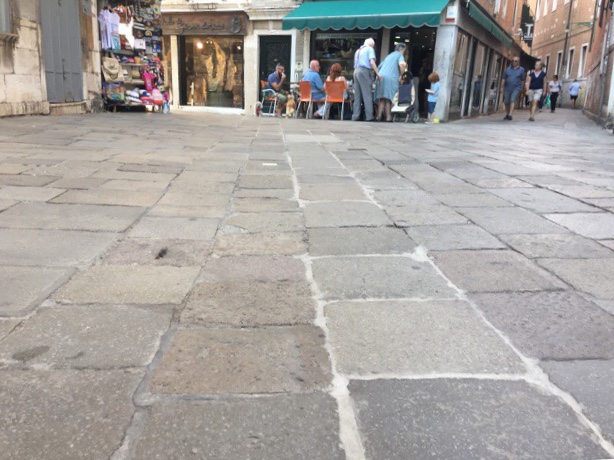 07 (火)00:03August サン・ステファノ教会の鐘楼 ベネチアで泊まったホテルは、サント・ステファノ広場の近く。まずは、この広場に出てから街歩きにGoーだった。この広場は横長くて、カフェがたくさんあって、いつも程よく賑わっていた。広場の北東にあるサント・ステファノ教会は入り口だけなら無料だったので、礼拝しました。広場のカフェで休憩。安いなーと思ったら、缶ジュースに冷凍ピザみたいなマルガリータ。 広場の中心に建つ19世紀の詩人"Niccolo Tommaseo"の立派な記念碑。 教会の北東側のサンタンジェロ広場から見上げたサント・ステファノ教会の鐘楼。思いっきり斜めだ。 斜めなのはピサの斜塔だけかと思ってたけど、もともと地盤が悪いベネツィアでは、垂直な塔の方が珍しいらしい。チェックインした後の町歩きで、まだベネチアの街に慣れてない時に、この広場は小さくて真四角で、建物が囲んでいて、そこから斜めに見える塔と赤茶色の古い建物が異世界のようだった。ここから上空を見上げて、しばらくウットリしてたよ(๑>◡<๑)地面は全部石畳。日本では見ることがない足下の景色。 サン・マルコ広場方面から帰るとき、いつも通った道。帰国して写真眺めてると、また行きたいなーって思うや。行きたい国がたくさん。。そして、写真の整理が終わらないまま、1ヶ月経った。。 2018-08-07 (火) | イタリア ベネチア コメント(0)