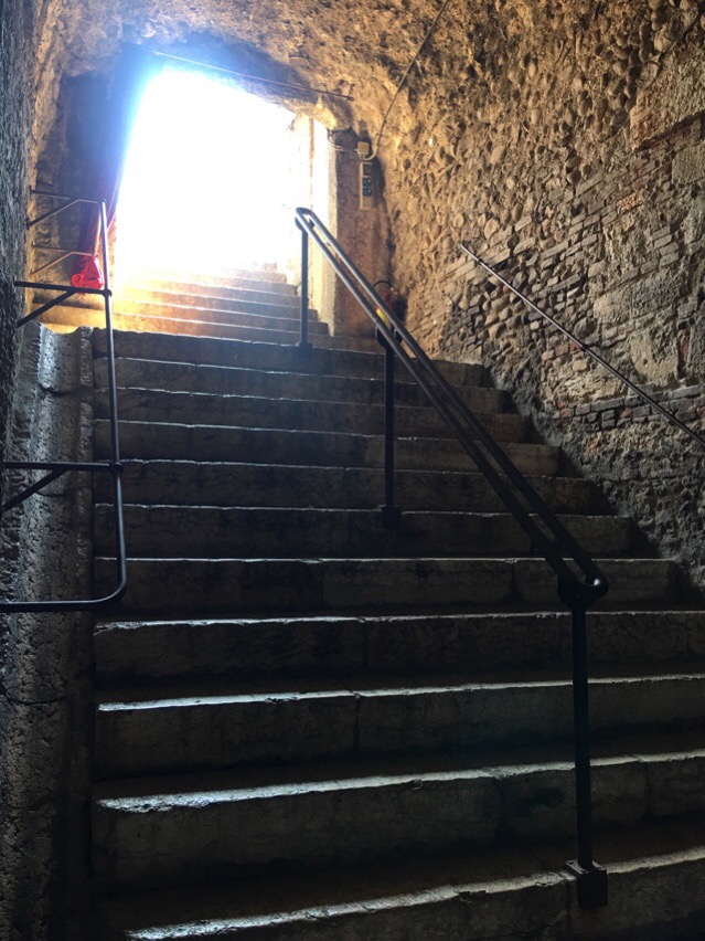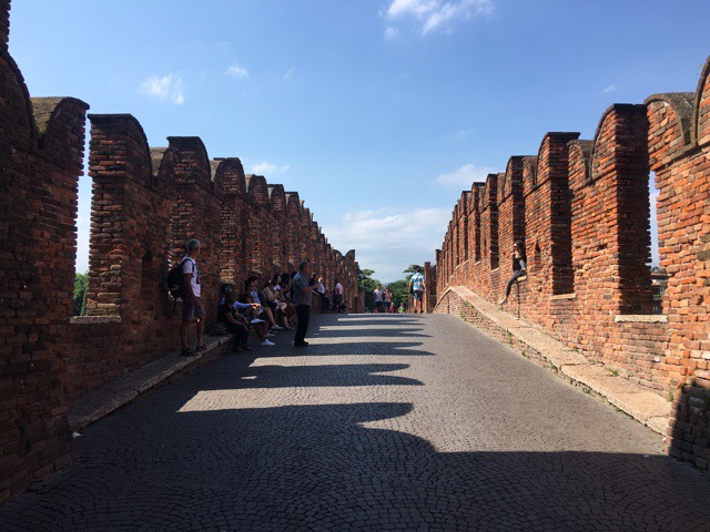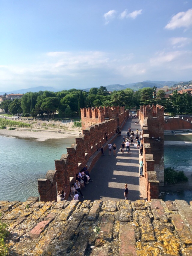 07 (土)09:38July 7/1 ベローナ♡カストロヴェッキオとスカリジェロ橋 Ⅱ お城の上に行ってみたいからチケット買って中に入ることにした。 ここに行きたい。 でも、私高所恐怖症なんだよね。行けるかなー。行けないだろうなーって思いながら外階段を上ったけど、半端なく怖かった。笑 金網しかない通路がずーっとお城の方まで続いてたけど怖くて行けず…(´°̥̥̥̥̥̥̥̥ω°̥̥̥̥̥̥̥̥`) ここも通路。 その通路から撮ったスカリジェロ橋。レンガがない小窓みたいなところ。。レンガ一枚隔てたら外なので怖かった。 7年前になるけどフィレンツェで嫌という程美術館巡りしてから、美術館にはあまり行かなくていい気持ちだったけど、やっぱり1つくらい行きたかったので、ちょうどよかった。肖像画を見てたら不思議な気持ちになるんだ。人って必ず死ぬんだよね。この人はこんな立派な肖像画を残して、どんな一生だったんだろうって思い描いたり。このお城の中でどんな生活が繰り返されてたんだろうとか。だから、何百年、何千年も前の状態でそのまま残ってる遺跡に心惹かれます。カストロヴェッキオは、イタリアではそんなにメジャーではないけど、とても良かったです。もちろん世界遺産です。# Ponte de Castel Vecchio# Scaliger Bridge 2018-07-07 (土) | イタリア ベローナ コメント(0)