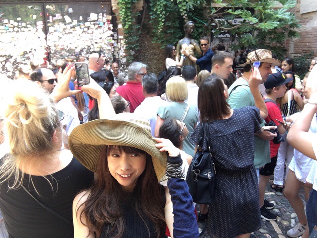 01 (日)20:12July ジュリエットの家 # ジュリエットのバルコニー# ジュリエット像# 人だらけ# ロマンがない(笑)# でも 映画と同じ場所♡# 映画「ジュリエットからの手紙」が好き# 小説「ロミオとジュリエット」には興味がない# 映画が好きだからヴェローナに行きたかった# 行って満足見て満足# 中には入らない# どこでも自撮り棒# 自撮り棒とうとうスイッチ動作しなくなった 2018-07-01 (日) | イタリア ベローナ コメント(0)