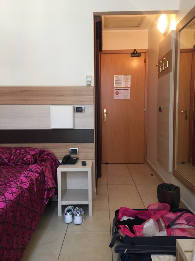 29 (日)22:35July ベローナ④ おまけ ベローナのスーパー。ホテルの近くにあったので、夜ご飯はスーパーで買い物。 長ーい水平型エスカレーター。 海外スーパーセルフレジ。面白かった(๑>◡<๑) レシートをお財布にしまって出ようとしたら、前の人がレシートのバーコードをかざしてるのが見えた。スキャンしないと出れないんだ。なるほどー(๑>◡<๑)(ミラノのスーパーは日本と同じでそのまま出れた) ベローナで泊まったホテルは、建物自体は古いけど、室内はきれいでバルコニーがついてました。 「ホテル シエナ」 狭かったけどバルコニーがあるので開放感があった。内装はリニューアルしてて、バスルーム、クローゼットもきれいだっし、ベッドカバーのサテンピンクと柄がすごく可愛いい♡ ドイツもイタリアも 1階は0階、2階が1階。なかなか慣れなかったや。スケルトンエレベーター。 朝食付きだったけど、8時過ぎのフロッチャロッサでミラノだったから、食べれなかったのが残念だった。。 2018-07-29 (日) | イタリア ベローナ コメント(0)