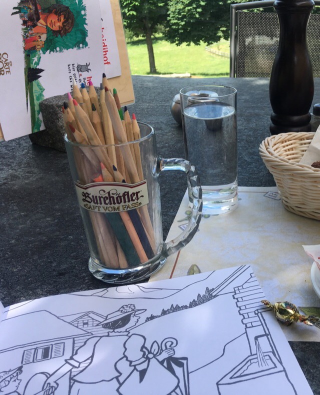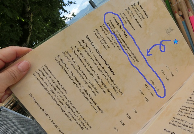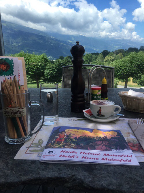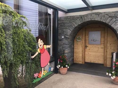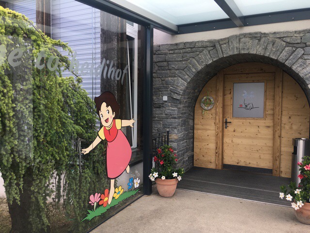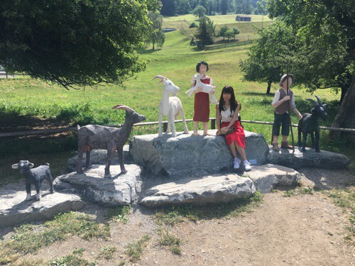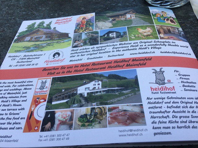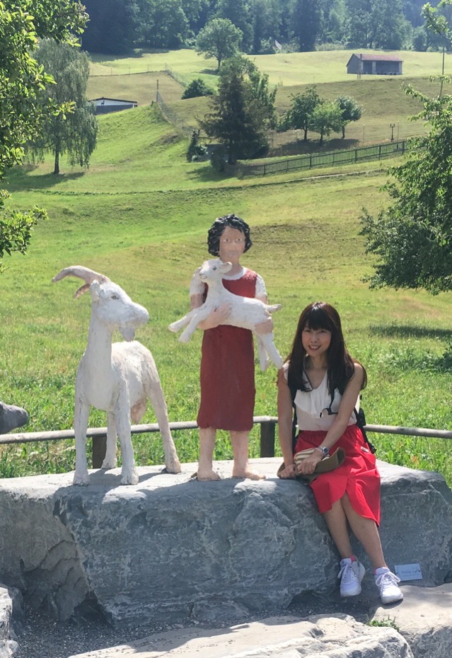 16 (月)22:40July ハイジホフ 山と平原を眺めながら歩くこと、1時間20分、ハイジドルフへの入り口が見えてきました。 私は寄り道や立ち止まりが多いので、ただ歩くだけなら1時間もあれば着きます。似た名称なので間違わないように!◆ハイジホフ → ハイジキャラクターがいっぱいあるホテル&レストラン◆ハイジドルフ →ハイジ村、ハイジの冬の家、ハイジショップがあるところ◆ハイジアルプ →ハイジの夏の家(レストラン)があるところ◆ハイジヒュッテ→ハイジの夏の家◆ハイジハウス →ハイジの博物館ドルフ ⇒村ヒュッテ⇒小屋ホフ ⇒中庭がある大きな建物の意味、ホテルとかデパートに使われるような「〇〇館」みたいな感じ。このハイジやペーター、ゆきちゃん達と写真撮りたかったので、スマホを固定して試行錯誤してたら、外人メンズがどこからかやって来て、写真撮ってくれた。自分もここで写真撮りたかった時に私を見つけた?みたいな。そんな感じと思う。 ハイジの山に行きたい行きたいってずーっと公言してたから、夢が叶ってとっても嬉しかった。 まずはハイジホフでごはん♡ ハイジ色、強くて嬉しいー。このレストランも行きたかったんだ♡ひとりで入るのドキドキしたけど、ウエイターさんとっても感じよかった。メニューみてもよくわからないけど、パスタが食べたかった。 ボロネーゼもトマトソースも好きな方じゃない。という理由で選ぶ。そしたらすごく美味しそうなパスタが♡薄く伸ばした正方形の生地にラビオリのように詰物をして、それを三角形に折って、両端を合わせて指輪状にした「トルテリーニ」っていうパスタ。 めっちゃ美味しいし、テラス席、すごく気持ちいい。ハイジホフで食べた食事が一番美味しかった。アルムの山の空気のせい? ←ハイジかぶれ。笑でも、本当に美味しかった。。 ウエイターに「ハイジが大好きなの♡」って言ったら「オッケー、ヤングガール♡」って言って、ぬり絵帳と色鉛筆持ってきてくれた。笑 とても、嬉しいんですけど(๑˃̵ᴗ˂̵)裏面にハイジホフのこと書いてあるし、ハイジ旅行の大切な思い出になる。 眺めが良くて、空気がきれいで、とってもステキなレストランでした。いつかまた行きたいな。。。さて、私が入ったときは誰もいなかったけど、食べ終わる頃には3組、お客様が座ってました。近くに座ってた年配のご夫婦が日本人だった。旅6日目になると日本語が喋りたくなる。話しかけたらとても感じがいいご夫婦で話しが盛り上がって、一緒にハイジドルフに行くことになったのでした。 2018-07-16 (月) | スイス マイエンフェルト コメント(0)