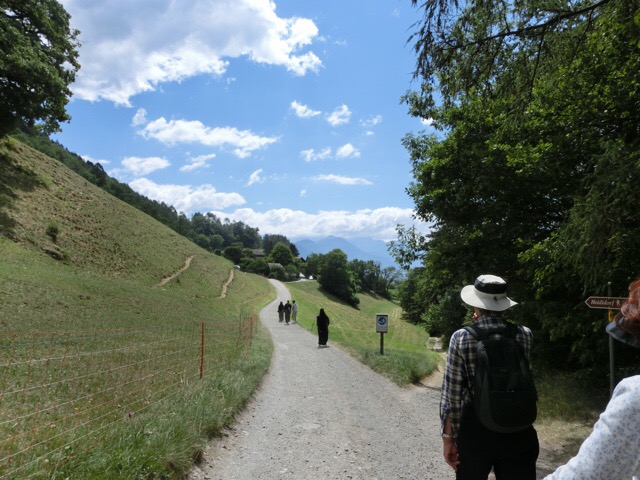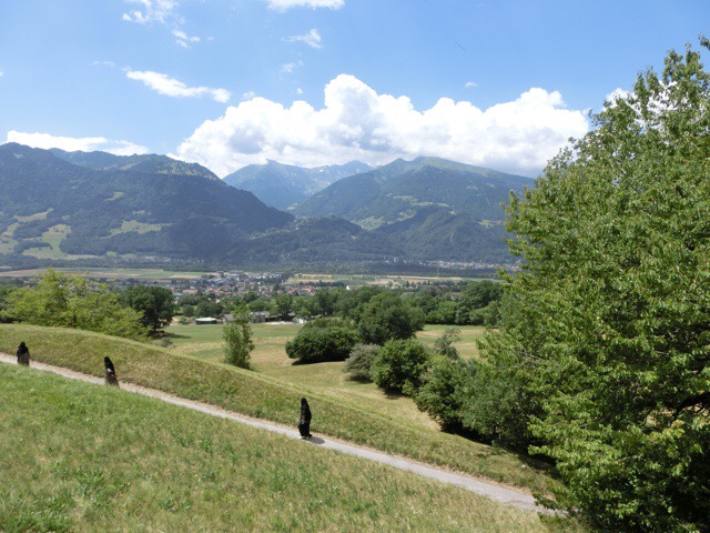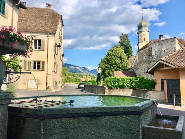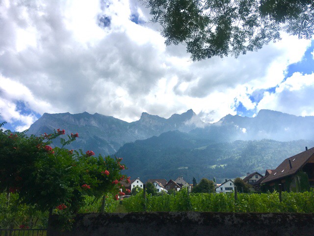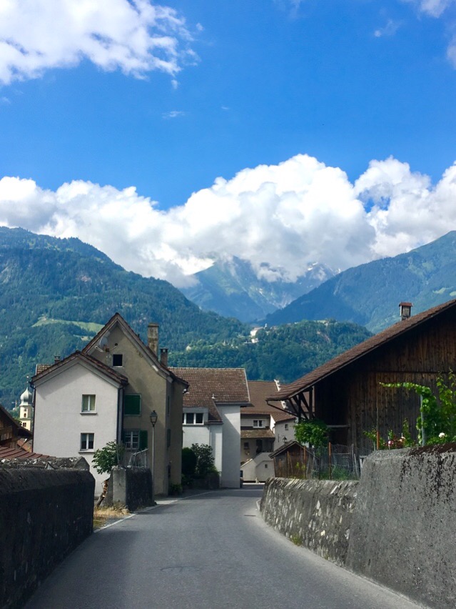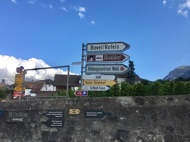 16 (月)20:00July 6月27日 ハイジの村へ行くまでの道 マイエンフェルト駅からまっすぐ数分歩くと交差点の右角にハイジショップがあります。噴水とハイジののぼり、窓には日本のアニメのハイジ。 入り口横にカフェテラスがあって、外人さんがたくさん座ってた。この景色、サイコー♡そう思いながら山を眺めた。 歩いてると中世っぽい建物の壁が見えた。「ブランディス城 」Schloss Brandis マイエンフェルトの城としてローマ時代までその歴史を遡る由緒ある建物です。15世紀にブランディス男爵に受け継がれた城は、現在、伝統の郷土料理から季節ごとの特別料理まで幅広く堪能できるグルメレストランになっているそう。 また噴水。高いところに下がっている金色の馬に目が止まった。 唯一のスーパー。 その先がマイエンフェルトの中心地。 カフェにはいつも人がいた。 中心地を通り過ぎたらぶどう畑が見えてきて、もともと高いテンションがさらに上がる♡ 山とぶどう畑が美しい!感激しながら歩きました。 また噴水♡ デリフラ村だわ(๑>◡<๑)宮崎駿監督が書いたハイジと一緒。ステキすぎる!なーんて思いながら歩きました。 ハイジドルフへの標識。 ここから先は、家がなくなって(遠くにポツポツ見えたけど)野原とアルムの山、自然だけ。 きれいな空気とアルムの山と自然が美しくて気持ちよかったー♡ この日は、ハイジホフでランチして。ハイジドルフ(ハイジの村、ハイジの冬の家とハイジショップがあるところ)行って。ハイジアルプ(ハイジの夏の家がある山の高いところ)は気分で行くか行かないか決めようって予定でした。行き道は股関節が痛かったけど、帰り道から股関節痛くならなくなったんだよね。っていうか、帰国するまで股関節が痛いとかすっかり忘れてた。不思議だ。アルムの山の空気が治したと信じてる。おんじが言ってたとおりだ。アルムの山はすばらしい(๑>◡<๑) 2018-07-16 (月) | スイス マイエンフェルト コメント(0)