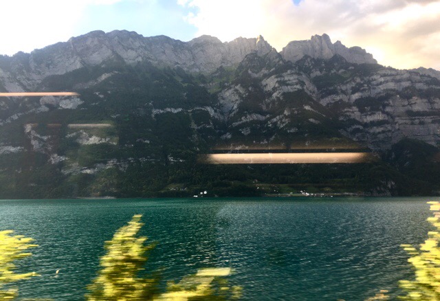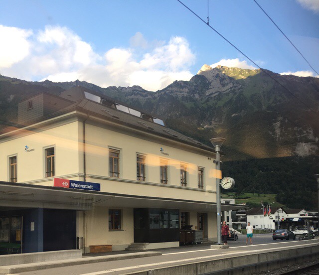 15 (日)23:28July 6月26日 マイエンフェルトへ 車窓から ドイチェバーンのおかげで散々だったけど、チューリッヒからサルガンスまでの車窓からの眺めは、疲れをぶっ飛ばす美しさでした。19:12チューリッヒ発の列車は、駅を出てすぐにチューリッヒ湖の湖岸を走りました。青い色と太陽に反射するキラキラがとても美しかった。 チューリッヒ湖を過ぎるとアルプスの山々が見えてきて、大きな山の麓の緑の中にポツポツと見える家や小屋がまさにハイジが見たアルムの景色(๑>◡<๑) しばらく走ったら突然また湖♡これがまた美しい。湖の後ろにそびえる切り立った山が神々しい。 ヴァレンシュタット「Walenstadt」っていう駅。 この湖はヴァレン湖。 美しい景色に元気取り戻したけど、サルガンスの駅に着いたときはやっぱり疲れてた。ホームがたくさんあって、どこから乗るのか調べる気力なし。もう頭使いたくなくて、タバコ吸ってたキレイな女の人にマイエンフェルトに行く列車はって何番ホームですか?って聞いたら「大丈夫。ちょっと待って。」って、スマホで調べてくれた。優しかったー(๑>◡<๑)私がとても疲れてるように見えたと思う。笑金髪ショートで背が高くて、きれいな人だった。指もすっごく細くて長い。 マイエンフェルトまでは2駅、8分。カラフルなかわいいシート。マイエンフェルトに着いたのは20時44分だけど、こんなに明るい。 夕日で山が輝いていた。 2018-07-15 (日) | スイス マイエンフェルト コメント(0)