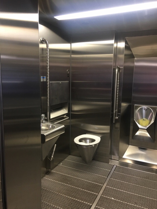 19 (木)15:00July サルガンスの駅 サルガンスは、ICが止まる駅で、駅前からのバスもたくさん出ている街です。 山、デカイ。。写真じゃうまく伝わらないけど、山の存在感がハンパなかった。 バス停。縦長の表示塔が並んでいる広い敷地。見晴らしがいい。ヨーロッパだなあ。。スイスだなあ。。日本と違う。。とか、ひとり喜んでた(๑˃̵ᴗ˂̵) バス乗り口は地面とフラットになるバリアフリー設計。そして、ベンツだよ(๑>◡<๑) ドイツから着いた時、イタリアに行く時、リヒテンシュタインに行く時と3回利用したけど、駅のキオスクは色々売ってて便利でした。バナナやリンゴを一つ=CHF1でバラ売りしてたし、スタバマシンもあったし。 スタバコーヒーにはとっても癒されました♡ ホームに行くには階段とスロープがあるので、旅行者には重宝します。(どの駅にもスロープはありました。スイス鉄道いいですね。) 駅のトイレは有料。 左側の広い方のトイレ。キレイ、清潔♡ 列車の旅は長いから行っておくべきかな。。って、トイレ前で悩んでたら、横にきた女性が「空いてるからあなたはそのまま入れるわよ。」って笑いながら教えてくれた。自分はコイン入れて右のトイレに入って行った。 おーーー、こうやってドアが閉まらないようにしてるの、ドイツの駅でもみかけた。出口のドアをわざと開けてるのってアリなんだ。。おもしろい。。。って写真撮ってたら、旅行者っぽいご婦人が私のようにトイレ前で悩み始めたから「ドア イズ オープン」っておしえてあげた。笑 2018-07-19 (木) | スイス マイエンフェルト コメント(0)