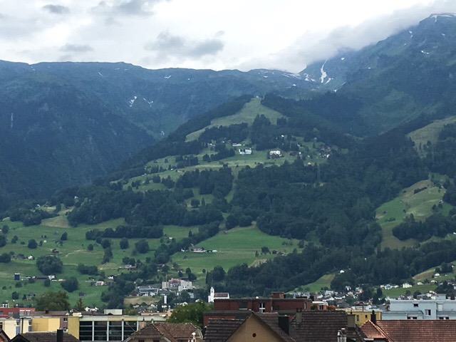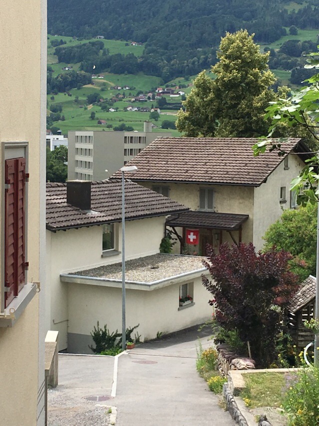 29 (日)19:34July サルガンス スイス 旅7日目 スイス3日目リヒテンシュタインの帰りにサルガンスの町を歩きました。駅から降りて、古城ないかなー?って見渡したらあった。 あまり気に留めなかったけど、古城は至る所にある。山上にある古城。中世を想像できる古城♡ ロマンチックな佇まい。 お城に向かって歩くことにした。サルガンスにもあちこちに噴水♡ 頑丈なゴミ箱。石畳の地面に固定されてるのがすごい。 巨大な石で車が通れないようにしてる。 薪のオブジェ? 教会。 教会の奥に代々の祖先が眠ってると伺える、おしゃれなかわいい、こじんまりとした墓地があった。映画に出てきそうな墓地。この辺りで暮らしてる人が眠っているんだろうな。そこから眺めるサルガンスの街並みが美しかった。アルプスの山すそに広がる家々と上の方にぽつんぽつんと建っている箱みたいに見える家。 見上げたらお城が見える。 サルガンスにも葡萄畑♡ スイスでは、道路にペット用のゴミ箱が設置されてる。 時々、スイス国旗を飾っている家も見えます。 日本にはない景色、風習を見ると楽しい。サルガンスもすてきな街でした。ヨーロッパ、歩くだけですてきだ♡♡ 2018-07-29 (日) | スイス マイエンフェルト コメント(0)