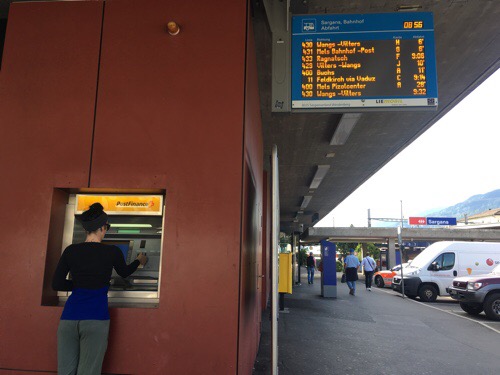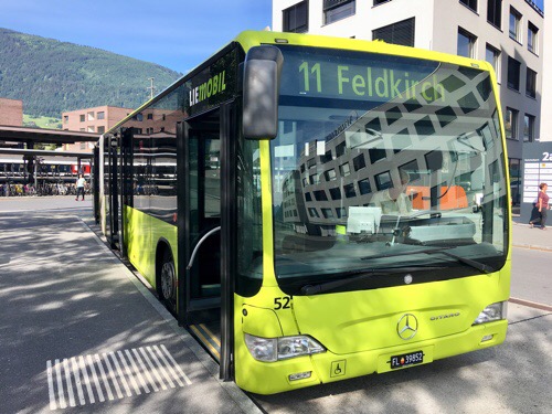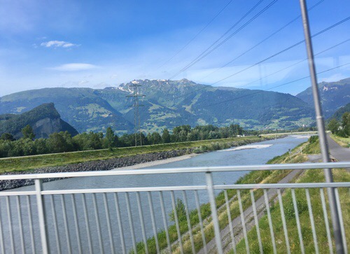 28 (木)16:14June リヒテンシュタイン行きのバス # 車窓から # 国境# ライン川#リヒテンシュタイン入国# バリアフリー乗降口# ファドゥーツ行き # サルガンスホームから見た山# スイスフランキャッシング# サルガンス駅 2018-06-28 (木) | リヒテンシュタイン コメント(0)