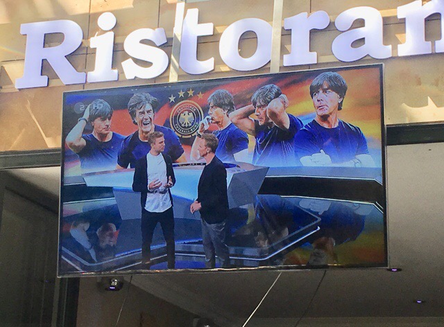 15 (日)15:58July サッカードイツ代表 レーブ監督 ドイツ(フランクフルト)は、サッカーの盛り上がりがハンパなかった。道路や広場のいたるところにカフェテラスがあって、カフェ前にある大型テレビではどこもワールドカップ放映してた。 どこで休憩しよっかなーってカフェ探してて、見上げたらテレビにレーブ監督が映っていたので、ここで休憩することに。ワールドカップダイジェストがあってた。 スタジオの背景が選手じゃなくて、監督。レーブ監督って、選手以上に露出が高い。10年以上監督してるし、人気あるんだなー、と思いながらオレンジジュースを飲む。 ヨアヒム・レーヴ(Joachim „Jogi“ Löw)1960年2月3日 西ドイツ出身の元サッカー選手。(現役時代フォワード)2004年 ドイツ代表ヘッドコーチ2006年 監督就任ニックネームは「Jogi(ヨギ)」レーヴ監督は、フライブルクに住んでるらしい。フライブルク。。 ドイチェバーンのせいでどこにあるか知ってる。行ったわ。フライブルクの駅から出て景色を眺めたわ。ドイチェバーンのせいで、いろんな街の名前覚えてほんの少しドイツ地理に詳しくなった。ありがとう、ドイチェバーン。フランクフルト駅前に何本もある通りのうちの一つ「Munchener通り」角のカフェ前。グループリーグ第2戦スウェーデン戦の23日は、20時開始だけど、その前の韓国×メキシコ戦から異様な盛り上がりで、まっ昼間からユニフォーム来た男がワイワイしてた。人が多くて圧迫感を感じたフランクフルト初日。強烈なインパクトだった。この動画は25日16時半だから、ふつうな感じ。旅の記念にアップ。このポスター、わりとあちこちに張られてた。 でも、誰かわからないや。教えて。。ついでにケルンのショップ前にたっていた等身大マネキンのこの人も誰かわからないわ。せっかく記念撮影したのに。 誰かわかる人。。教えて。。 2018-07-15 (日) | ドイツ フランクフルト コメント(0)