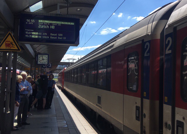 12 (木)12:33July ドイツ鉄道に驚く ドイツ鉄道の旅① ドイツ国鉄がこんなに酷いこと、乗る前に知っていたらあそこまで疲れなかったし、焦らなかっただろう。旅5日目に起きたドイツ国鉄の悲劇。めっちゃ疲れた。ツェルに向かってるのを知った時は心折れたよ。笑この日はフランクフルト(10:05発)からマイエンフェルト(最寄りのICE停車駅サルガンス15:02着)まで鉄道で移動予定。重いトランクを持って乗換えしたくないから乗換えなしの列車を選んで予約してた。 フランクフルトからサルガンスまで5時間。ハイジが乗った鉄道ルートが、この旅のメインイベントですから。すごくウキウキしていたわ。 バーデン・バーデンを11時32分に通過。もうすぐ「ストラスブール」の近くを通るなーとか(ストラスブールに寄りたかったんだよね)車窓から見える駅名を確認しながら順調ーって思ってた。 でも、その20分後、隣に座ってた女の子が「ハプニングが起きたみたい。みんな降りなきゃいけないみたいよ。」と。(英語で話しかけられ、なんとなく理解する)Ipod聴いてたからアナウンスは聞いてなかった。そもそも、聞いてもわかんないし。ハプニング?降りる?はい??降りる・・あのバカ重たいトランクを持って?ここどこ?11時57分、見知らぬ駅で降りることになる。 オッフェンブルク(Offenburg)という駅らしい。私から見るとみんなドイツ語理解できる白人だけどそうじゃない旅行者も多かった、と思う。日本人、もちろんいないし、中国人すらいない。笑オーマイガだわ。車掌にどうするのかを聞くと、「ウエイト、ノープロブレム」「向こうの1番で待っていればチェンジするトレインが来るよ」「ウエイト、ウエイト」やたらウエイトを連発しますが、こんな田舎の知らない駅で悠長に待てるほど精神力ないんですけど‥隣のホームの列車‥? どれでもいいの?と聞けないまま、みんな隣のホームに移動してるから、とりあえず隣のホームに行く。バカ重いトランクを持って階段を下りて上る‥隣のホームに行くと女の車掌がいたので、もう一度確認。私はスイスのマイエンフェルトに行きたいから、この列車に乗れば着くの?って聞いたら、「2番の列車に乗って乗換えして。そしてバスにチェンジして‥」⇒この後は聞き取り不能。 列車は満員。大きなトランク持ってる人がほとんどで人と同じくらいトランクが場所をとってて、しかも各駅停車のようで、駅ごとに人が乗ってくる。 12時42分Riegel-Malterdingen(リーゲルマルターディンゲン)通過。駅名見ても読めず‥乗ってる人たちの会話では、この列車はバーセルに行くらしい。バーセルは、大きな駅で聞いたことあるからちょっと安心する。でも、バスでチェンジって言ったよね。。でもその僅か10分後に突然、全員降りるアナウンスが。アナウンスは聞き取れないけど、みんなの会話でなんとなく理解する。「ここで降りろって」「ここからバスで行くらしい」「え~?ここでか?」みたいな。やっぱりバスか。。こんな田舎の駅で。こんなバカ重いトランク持って。たまらんちゃけど。ここはどこ?わたしはどうなるの?って、頭の中で渦巻いてました。12時56分 Riegel-Malterdingenの次の駅⇒kondringen(ケントリンゲン)??疲れて駅名確認する気もち消滅‥ 着いたらバスが3台待機してた。どれに乗ればいいのか、サッパリ。そんな見たこともない行先表示見てもどこかわからないし。ドイツ語はカタカナ読みもできないわ。スマホで悠長に調べる時間もないし。とりあえず、バス運転手に聞いたけど「スイスに行きますか?」⇒「行かない」一度経験すると、このバスは近くの駅まで輸送するだけだから行くわけがないけど。どこに行くかわからないバスに乗るのを躊躇してたら、3台ともバス行ってしまった。満員で、もうこれ以上乗れないくらいの人を乗せて。でも、人はまだたくさんいて、その間にも新しく他の列車から降りた人が集まってくる。このバスに乗るしかないけど大丈夫なのかな?まわりは旅行者でない現地の人もたくさんいるし、めっちゃ不安。勇気を出して近くにいた女性に英語で話しかけたら「私は英語はわからないの」、もう一人の女の人にも英語はわからないと言われ。そっか、みんなドイツ人なんだ‥もういいや、とりあえずバスに乗ればどこかの駅に行くだろうって思ってバスに乗る。バスの中で情報交換してた人たちの中でヨハネのような男性に「このバスはどこに行くの?」って聞く。ヨハネのようなドイツ人は英語が話せて「フライブルクという駅に行くんだよ。」と。そして、私にどこに行く予定かを聞いてくれたので「マイエンフェルト、スイス」って答えると「フライブルクは大きな駅だから大丈夫だ」って言ってくれた。なので、安心した。けど、大きな駅には程遠い、ドイツの片田舎の情緒あふれる小さな駅に到着。13時45分 Denzlingen(デンツリンゲン)改札口に人がいない駅だよ。笑 線路の上、歩いてもいいくらい長閑なめっちゃ小さい駅。もう笑うしかない。ここ、